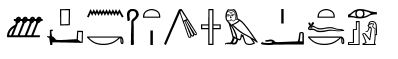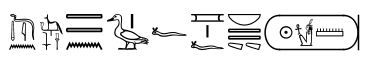 Que le roi, le maître des Deux-Terres perdure en apparaissant sur le trône d'Horus, qui préside à la salle d'habillage, qui préside le domaine de la Douat, qu'il suive tous les vivants comme Rê éternellement