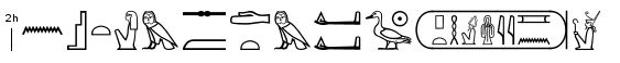 1h-pour Horus qui est dans Ro-a, endonation du roi ( Men-Maât-Rê )|, le roi de Haute Égypte.