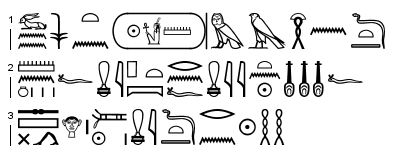 Puisse le roi le Maître des Deux-Terres ( Men-Maât-Rê )| perdurer, étant couronné sur le trône d'Horus et des vivants, comme Rê chaque jour.