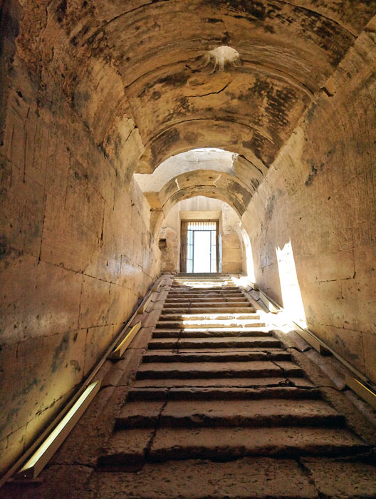 La sortie du temple se fait à travers une première salle consacrée à Ramsès II, puis par un escalier.