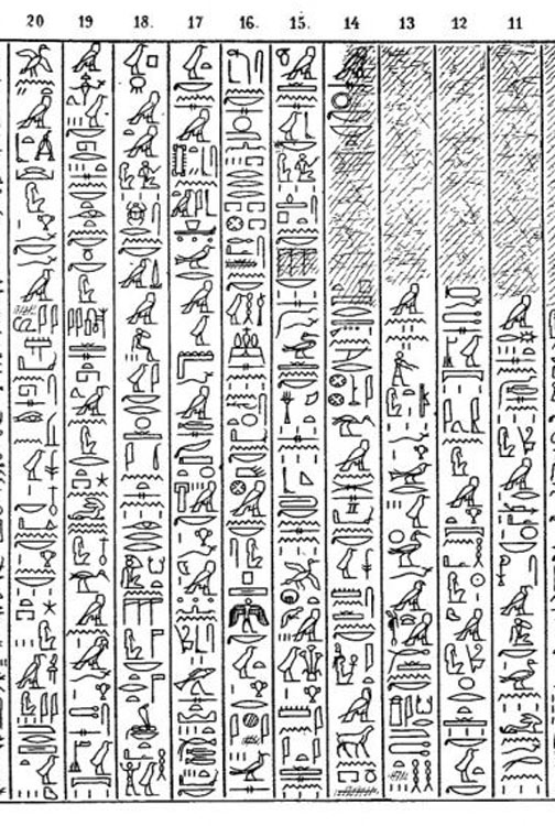 Il manque 2 lignes de hiéroglyphes en haut sur la photo